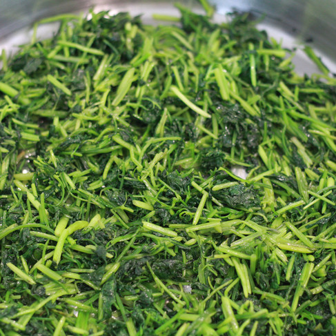 Add the chopped cilantro to the same pan and cook on low heat for about 10 minutes, until most of the water evaporates and it releases a sweet aroma.